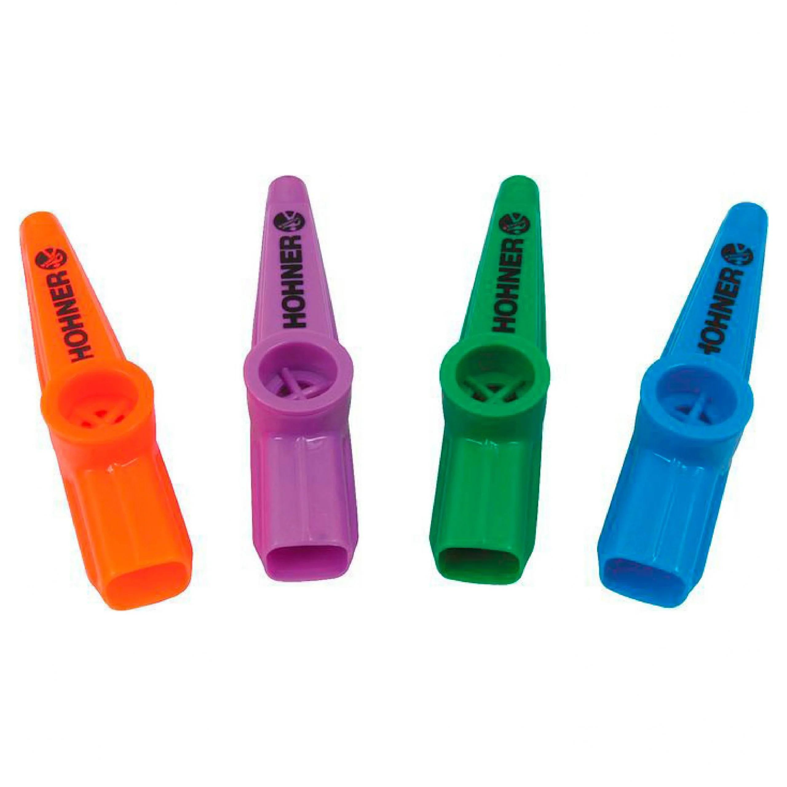 This is a tough institutional Kazoo made of soft strong plastic. This is a first class product and a great product for the classroom. Colors vary. A kazoo player hums, rather than blows, into the instrument. The oscillating air pressure of the hum makes the kazoos membrane vibrate. The resulting sound varies in pitch and loudness with the players humming. Players can produce different sounds by singing specific syllables such as doo, who, rrrrr or brrrr into the kazoo.